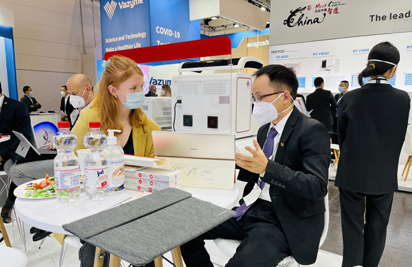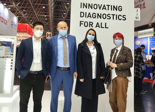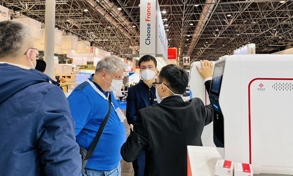 在PA视讯展台,“全自动解决方案”“半自动解决方案”“新冠整体解决方案”,以最大程度满足不同国家和地区客户、不同应用场景检测需求的特点,获得了众多来访国际客户的好评。尤其是iPonatic四通道产品,以其便捷、易操作、检测时间快、检测项目多等优势吸引了会场一大波新老“粉丝”的目光。
