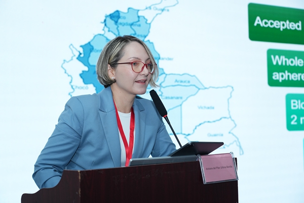 哥伦比亚红会血库医学主任及罗萨里奥大学生物医学科学系医学与健康科学学院职业副教授Dr. Adriana Urbina发表了《哥伦比亚血筛的方法、现状和未来趋势》主题报告。她从哥伦比亚医疗制度及血站分布入手,探讨了当前血筛项目的筛查方法及其挑战,强调了血筛核酸检测具有优越性,能广泛识别病原体突变株,降低感染风险,确保血液安全。同时,她提出了利用分子方法学筛查虫媒病毒等创新思路,并对PA视讯生物分子血筛检测方案高度赞赏。